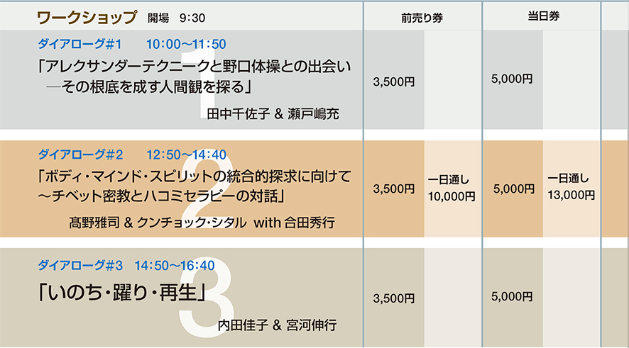 〈ソマティック〉に関わるエキスパート同士の間に生まれる〈ダイアローグ〉(対話)に、共にわくわくしましょう。